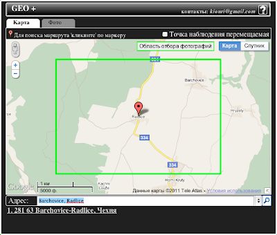 Выбор фотографий будет осуществляться из области, ограниченной зеленым прямоугольником. Размер области зависит от вида введенного адреса.